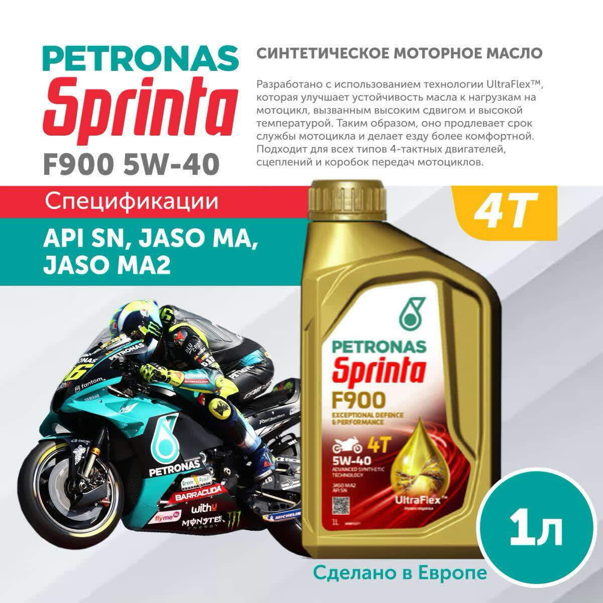 PETRONAS SPRINTA F900 5W-40 – высококачественное моторное масло класса API SN/CF специально разработано для бензиновых и дизельных двигателей легковых автомобилей Обеспечивает надежную защиту двигателя от износа и загрязнений, способствует снижению трения и экономии топлива. Увеличивает срок службы силового агрегата и обеспечивает его бесперебойную работу при любых нагрузках. Подходит для современных турбированных и атмосферных моторов. Удобная упаковка объемом 1 литр идеально подходит как для доливки, так и обслуживания небольших гаражей.
